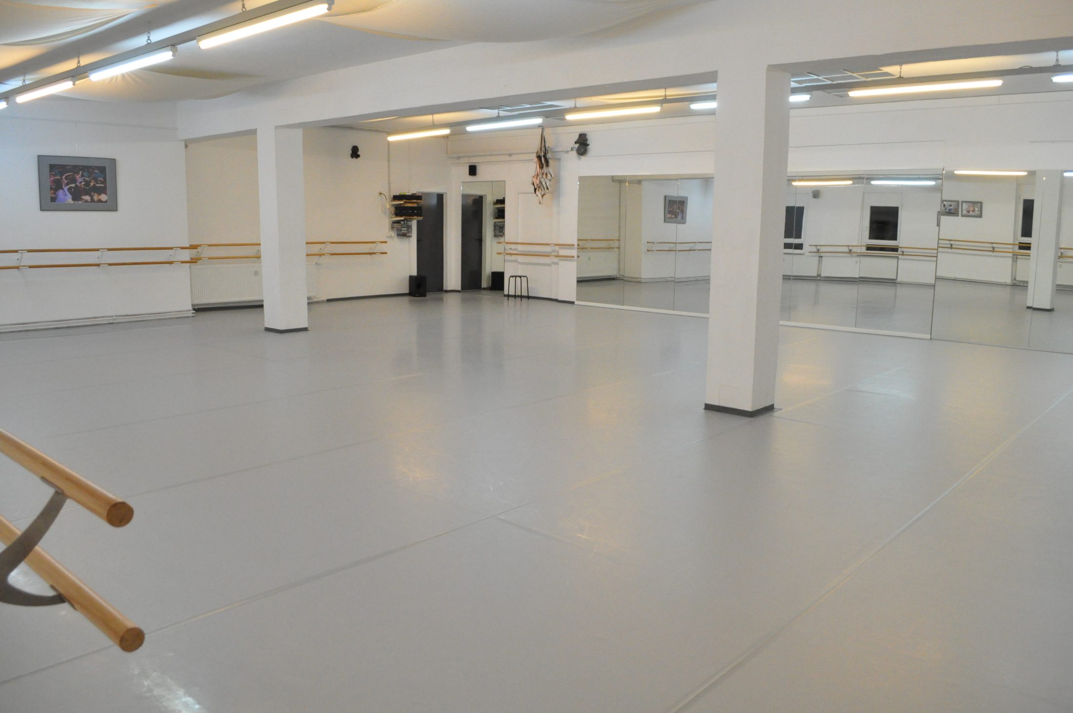 Bei jeweils 150qm Tanzfläche, sonnendurchflutet und luftig lässt es sich dabei wunderbar tanzen und trainieren.